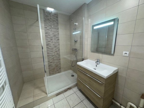 Ce logement se compose d’une hall d’entrée avec placard, d’une cuisine séparée aménagée et équipée ( réfrigérateur/ congélateur, un four, une plaque de cuisson, un lave vaisselle, un grand séjour donnant accès à la terrasse, deux chambres avec placard aménagés, une salle d’eau avec arrivée pour machine à laver.