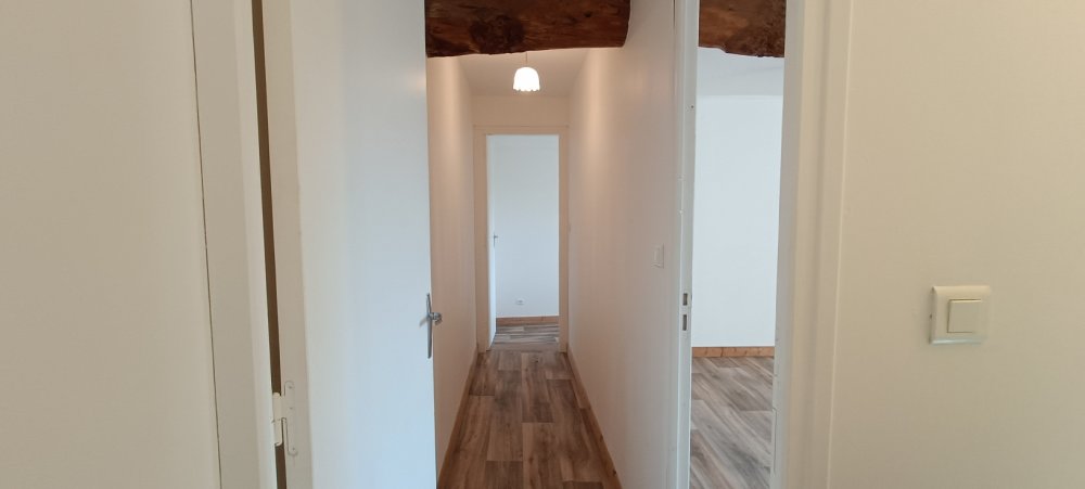 Elle se compose d’une cuisine ouverte sur un séjour lumineux, de deux chambres confortables, d’une salle de bains équipée d’une baignoire ainsi que de deux WC. Le logement est doté d’un système de chauffage individuel électrique.