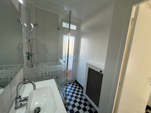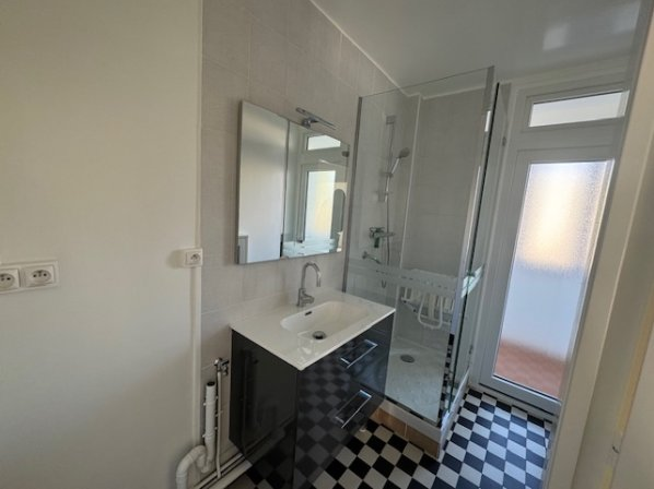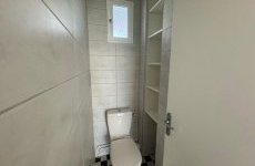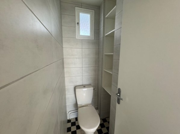Un w.c séparé avec rangement, une salle d’eau avec arrivée d’eau pour machine à laver.