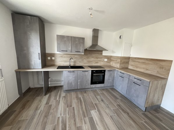 A FEURS, rue Camille Pariat au 3ème étage sans ascenseur, appartement T3 non meublé d’une superficie de 74 m². Ce logement se compose d’un grand hall d’entrée avec une grand placard, un w.c séparé, un cellier, une cuisine aménagée et équipée ( hotte + four + plaque de cuisson) ouverte sur le séjour, deux chambres, une salle d’eau (douche)
