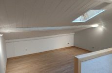 Elle se compose d’une cuisine aménagée et équipée (hotte, four, plaque de cuisson) ainsi que d’un séjour de 22,46 m². Au premier étage, le couloir dessert deux chambres, une salle d’eau avec douche et un WC séparé. Au dernier étage, vous trouverez un bureau pouvant être transformé en chambre.