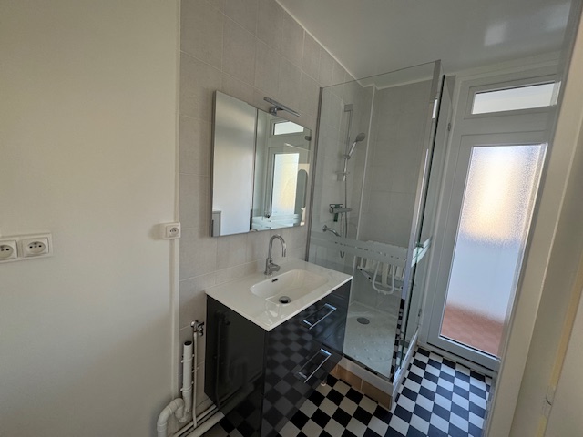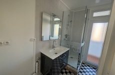 Un w.c séparé avec rangement, une salle d’eau avec arrivée d’eau pour machine à laver.