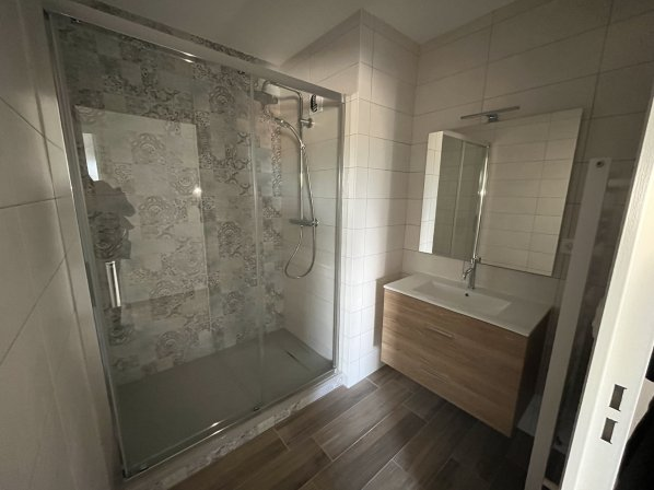 A FEURS, rue Camille Pariat au 3ème étage sans ascenseur, appartement T3 non meublé d’une superficie de 74 m². Ce logement se compose d’un grand hall d’entrée avec une grand placard, un w.c séparé, un cellier, une cuisine aménagée et équipée ( hotte + four + plaque de cuisson) ouverte sur le séjour, deux chambres, une salle d’eau (douche)