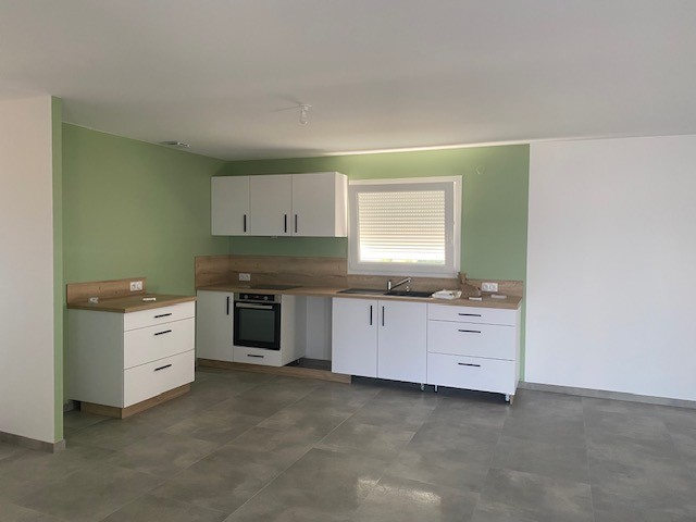 A LOUER, à SAINT-MARCEL-DE-FELINES, maison T4 récente de plain-pied, comprenant une cuisine équipée ouverte sur un séjour lumineux, trois chambres, une salle d’eau, un WC indépendant et un cellier.