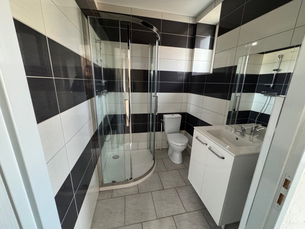 A SAINT SIXTE LA FABRIQUE à 5 minutes de BOEN SUR LIGNON, dans un petit immeuble calme, bel appartement T3 au 1er étage non meublé d’une superficie de 60.72 m² composé d’une cuisine aménagée et équipée hotte + four, + plaque de cuisson ouverte sur le séjour, deux chambres, une salle d’eau (douche) avec w.c