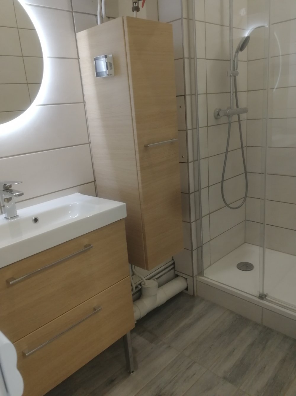 A LOUER MONTBRISON, dans le centre ville, place des Pénitents, appartement T2 de 47 m² entièrement rénové, 2ème étage. Cuisine, séjour, une chambre, salle d’eau