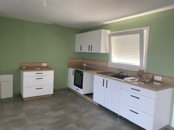 A LOUER, à SAINT-MARCEL-DE-FELINES, maison T4 récente de plain-pied, comprenant une cuisine équipée ouverte sur un séjour lumineux, trois chambres, une salle d’eau, un WC indépendant et un cellier.
